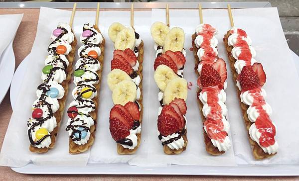 之後可能還會推出草莓香蕉、草莓奶油、聰明豆、棉花糖⋯等口味,個人覺得不管是什麼配料放在鬆餅棒上頭都好搭呢!